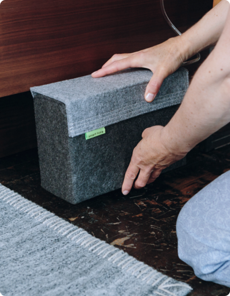 With Smart Nora, there is nothing to put on your face or in your mouth. Sleep in comfort and enjoy snore-free nights.