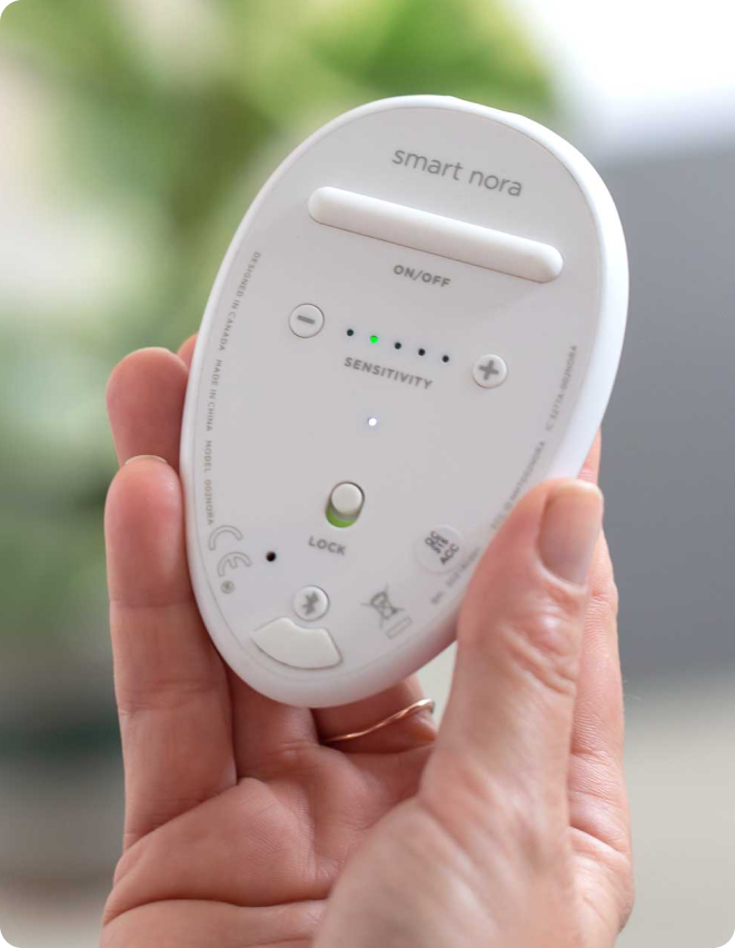 Customizing Smart Nora is key to getting great results. Smart Nora comes with a sensitivity setting on the Pebble and an inflation setting on the Base unit. Customize Nora during the first 5-7 nights to find your optimal setting.
